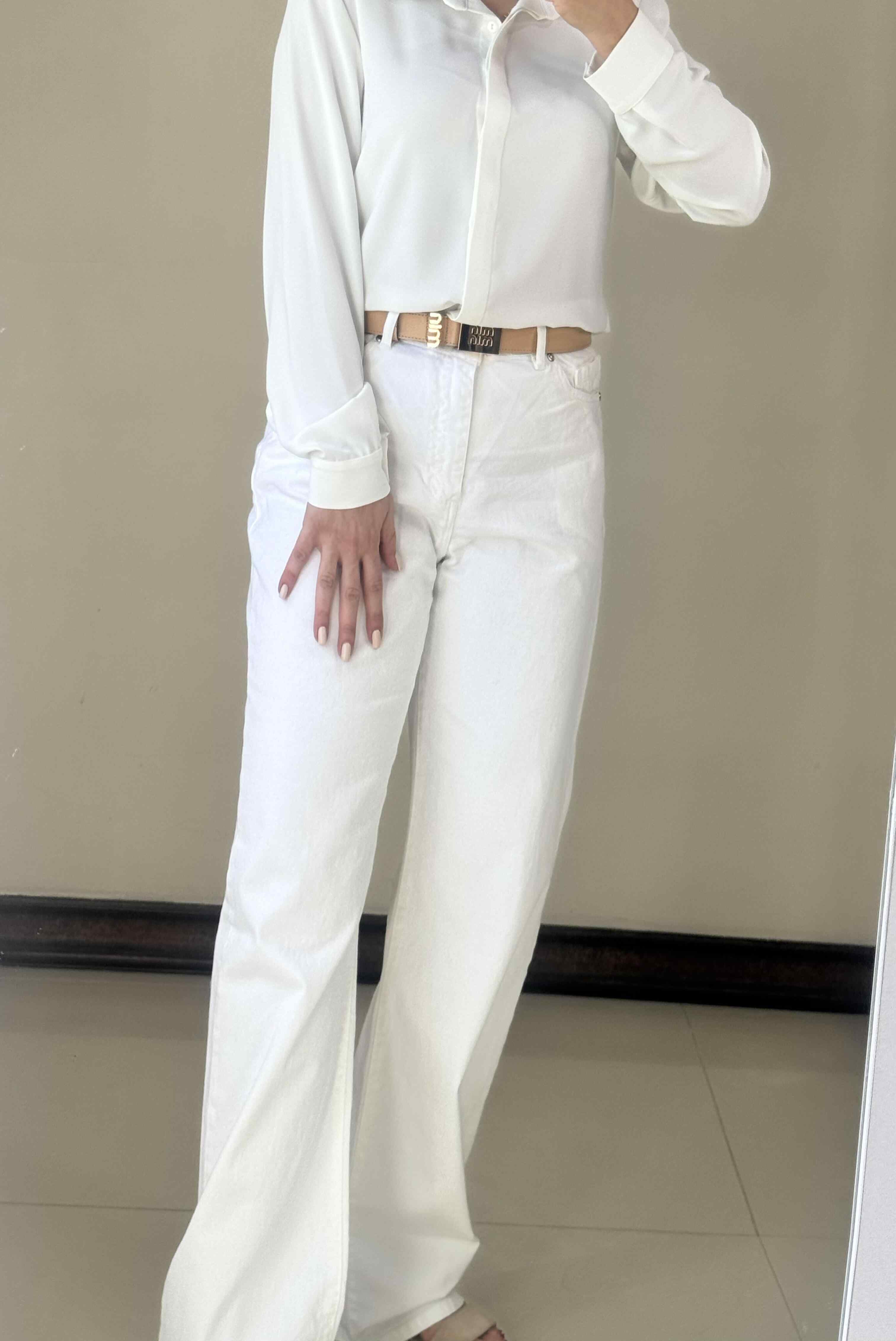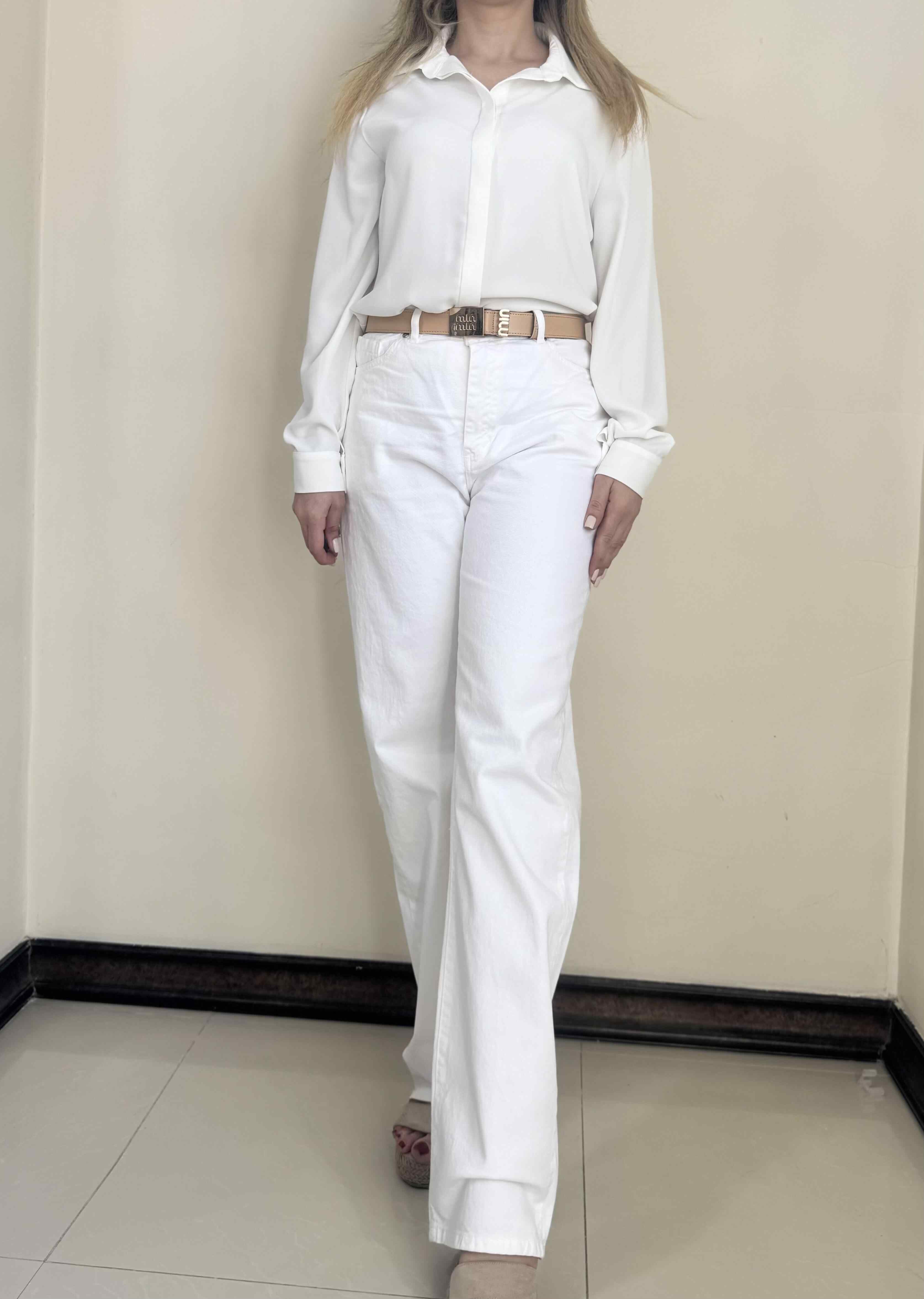 برای شستشو بهتر است شلوار را پشتورو کرده و با آب سرد و شوینده ملایم بشویید تا رنگ سفید کدر نشود. جدا از لباسهای رنگی شسته شود که رنگ پس ندهند. اتوکشی لازم نیست مگر برای چینهای جزئی؛ در صورت نیاز با حرارت کم و ترجیحاً رویه پارچه نازک اتو شود تا بافت جین آسیب نبیند.