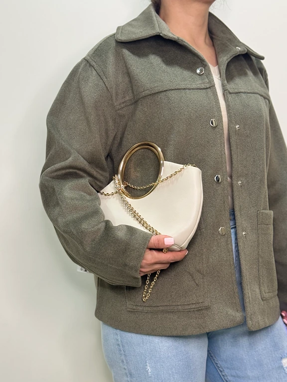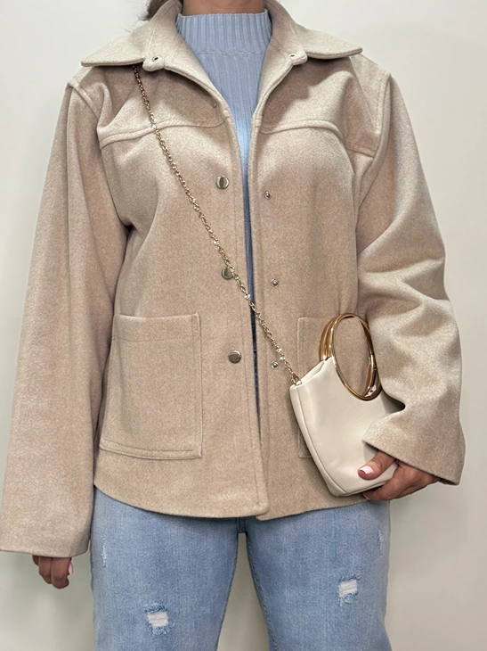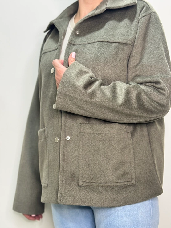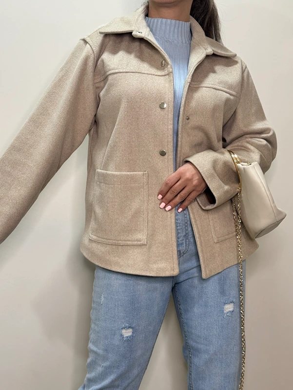 کت فوتر زنانه جیب دار دکمه دار کرم و یشمی سایز ۳۶-۴۴