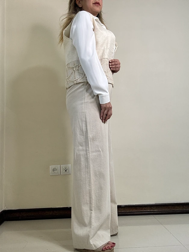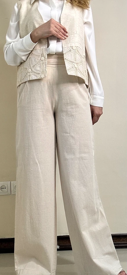 این شلوار کرم لنین به دلیل رنگ کلاسیک، جنس عالی و برش استاندارد، گزینهای کاربردی و همیشهمد برای کمد لباس شما است و هم برای محیطهای رسمی و هم برای استایل روزمره مناسب است